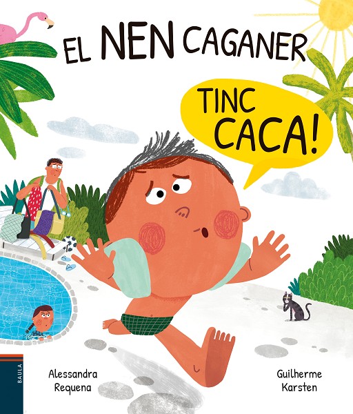 Fa un dia perfecte, amb ub sol radiant, i som els primers d'arribar a la piscina. Quines ganes de nedar! Però, de sobte, el meu germà crida... -PAPA! TINC CACA! De pressa! Aconseguirem que pugui arribar al vàter a temps?. Una història divertida sobre el fet de tenir ganes de fer caca que ens ensenya...