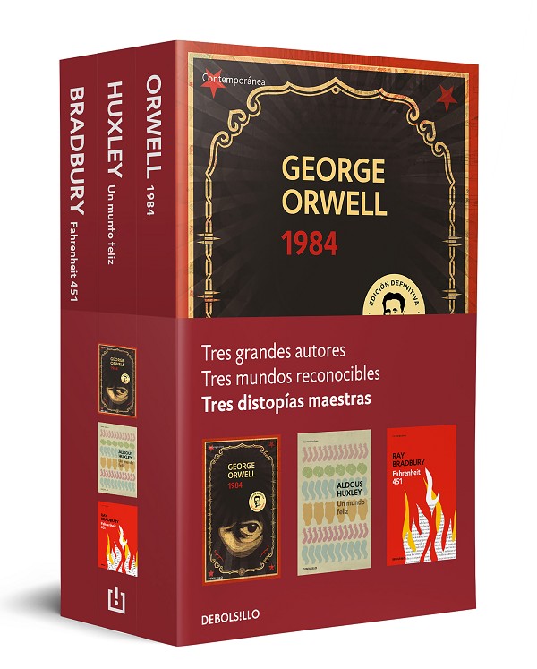 Tres grandes autores. Tres mundos reconocibles. Tres distopías maestras. Presentamos un pack con tres obras fundamentales del siglo XX: Un mundo feliz (1932), 1984 (1949) y Fahrenheit 451 (1953). Sin ninguna duda, pocas novelas de anticipación han sido tan influyentes como estas en la imaginación literaria posterior. Pero las visiones de sus autores no solo han cambiado el rumbo de la literatura, sino que también parecen haber anunciado la realidad de nuestros días. Desde la fractura social vislumbrada por Aldous Huxley hasta la posverdad prevista por George Orwell, pasando por la anestesia consumista denunciada por Ray Bradbury, reconocemos en estas ficciones muchos de nuestros males actuales, hasta el punto de que llegamos a preguntarnos si no estaremos viviendo en una distopía. Sin embargo, estas novelas no se agotan en sus profecías. De un modo quizá más importante, constituyen una poderosa advertencia sobre los futuros que pueden evitarse. En el reverso de las tres historias, cuya fuerza se realza al leerlas en conjunto, se oculta una viva defensa de la libertad, el pensamiento crítico y la responsabilidad individual y colectiva.Sobre las obras: «Un mundo feliz retrata una utopía perfecta o su horrendo opuesto, una distopía: sus hermosos habitantes viven seguros y libres de enfermedades y preocupaciones, pero lo hacen de un modo que, queremos creer, sería inaceptable para nosotros.» Margaret Atwood «Ninguna obra fantástica ha alcanzado el horror lógico de 1984.» Arthur Koestler«De entre todos los infiernos del conformismo, Fahrenheit 451 ofrece el retrato más convincente.» Kingsley Amis «Aldous Huxley fue un hombre extraordinariamente profético, no hay otro novelista en el siglo XX que haya escrito una guía más sagaz del futuro.» J.G. Ballard «La virtud de libros como 1984 es su capacidad para recordarnos que la libertad de los seres humanos responsables no es igual a la de los animales.» Anthony Burgess«Fahrenheit 451 es una fábula perfecta.» Ursula K. Le Guin