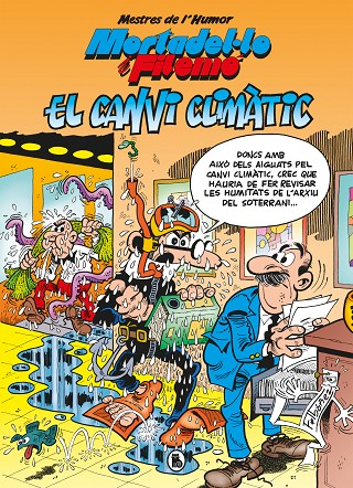 Número 58 de la col·lecció «Mestres de l'Humor». MORTADEL·LO I FILEMÓ CONTRA EL CANVI CLIMÀTIC. El Súper encarregarà als agents de la T.I.A. una missió on hauran de lluitar contra els efectes del canvi climàtic, que està causant problemes arreu del món. Els agents s#enfrontaran a la situación conforme les seves capacitats, que com ja tots sabem, no en són moltes, però no faltarà el bon humor a les aventures d#en Mortadel·lo i Filemó, tot i tractar-se d#un assumpte delicat. La col·lecció: «Mestres de l'Humor» recull les edicions en català de les obres publicades a «Magos del Humor», col·lecció nascuda a l'editorial Bruguera l'any 1984 i que recuperava els títols que ja havien estat publicats per la seva predecessora «Ases del Humor» (1969). Degut al tancament de Bruguera l'any 1986, en aquesta etapa només van arribar a veure la llum els primers 12 volums de la sèrie, però l'any 1987 Ediciones B va reprendre la publicació de la col·lecció des del primer número fins l'actualitat. «Mestres de l'Humor», amb format col·leccionista en tapa dura de 210 x 290 mm, és la col·lecció en la que apareixen per primera vegada les aventures inèdites de Mortadel·lo i Filemó en català, tot i que, històricament, també ha acollit algunes aventures protagonitzades per Zipi i Zape i Super Llopis.