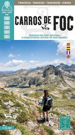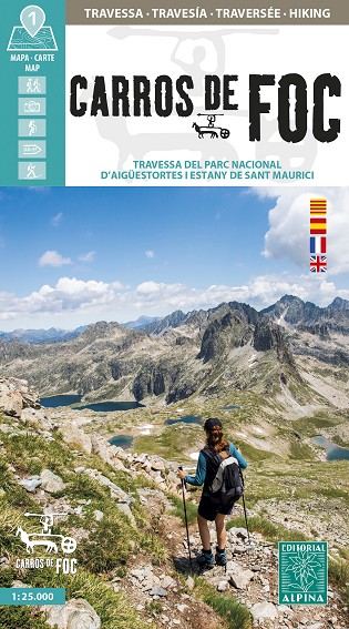 Carros de Foc: Mapa oficial. Ámbito del mapa: Pirineo Catalán Occidental. Parque Nacional de Aigüestortes y Estany de Sant Maurici. Comarcas del Pallars Sobirà, Pallars Jussà, Alta Ribagorça y Val d'Aran. Características: mapa topográ co a escala 1:25.000 con la travesía Carros de Foc y los refugio...