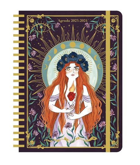 La ilustradora y escritora María Hesse nos sorprende cada curso con una agenda aún más bonita que el anterior, y la de este curso 2023-2024 es absolutamente espectacular.La autora recopila e ilustra la historia de 12 divinidades o seres mitológicos femeninos pertenecientes a diferentes culturas y religiones del mundo, que tienen en común sus ansias de libertad, de empoderamiento y de independencia respecto a sus congéneres masculinos. Algunas son guerreras; otras, brujas, sanadoras, hechiceras o sabias, en definitiva, son arquetipos inspiradores para las mujeres reales actuales.