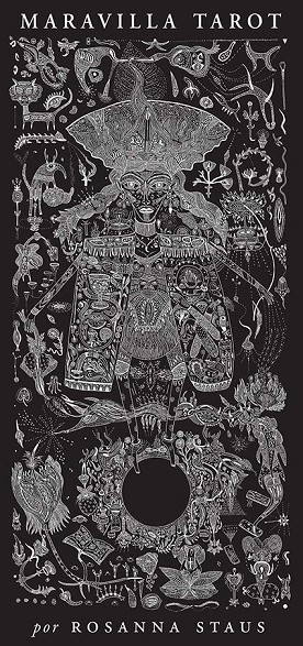 Mucho antes de que las cartas del Tarot sirviesen para despertar fuerzas ocultas, los mazos se entendían, sencillamente, como obras de arte para disfrutar durante el juego. La artista alemana Rosana Staus recupera esta simbología original en Maravilla Tarot, una obra gráficamente deslumbrante, donde el arte y la poesía se entrelazan para reimaginar y resignificar el sentido de las cartas de este popular juego nacido en el siglo xiv. Staus utiliza la técnica del grabado, de finas líneas negras sobre blanco, creando ilustraciones polisémicas, para reinterpretar las setenta y ocho cartas del Tarot. Las criaturas y personajes del mazo, como la Curandera, los Enamorados, el Sol o la Luna, conviven en este mundo onírico que se aleja de su significado esotérico para entenderse como un juego artístico y literario. Julius Müller-Bernstein acompaña los veintidós triunfos y las cuatro familias del Tarot con aforismos poéticos. Maravilla Tarot simboliza el viaje del héroe arquetípico. A la manera de Gilgamesh, Hércules o Ulises, el protagonista desciende al inframundo hasta que, finalmente, con un rumbo favorable, regresa a la luz del mundo superior. Las cartas, que pueden transmitir un punto de inquietud, representan las distintas etapas de esta odisea. Quien se acerque sin prejuicios a esta obra descubrirá sentidos personales e intransferibles.