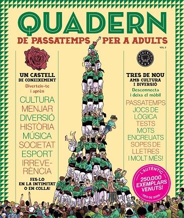 El Quadern conte´ passatemps, jocs de lo`gica, tests, mots encreuats, sopes de lletres i altres exercicis pensats per a la teva diversio´ i aprenentatge. La fo´rmula infal·lible d’una mica de seny i una mica de rauxa. Fes-lo a la platja, a la muntanya, al transport pu´blic, sota l’ombra d’un pi o al caliu d’una llar de foc. Fes-lo en solitari o amb bona companyia. I ara, llenc¸a el mo`bil ben lluny i que comenci l’aventura.