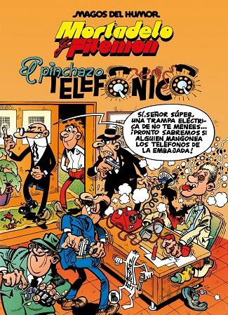 Número 55 de la colección Magos del Humor En esta aventura de 1994, la banda del Pincho Moruno se dedica a pinchar las líneas telefónicas para enterarse de los planes secretos. La T.I.A. ha conseguido una lista de los teléfonos que la banda piensa pinchar y nuestros agentes Mortadelo y Filemón deberán impedirlo y detener a los miembros de la banda. Sobre la colección: La colección Magos del Humor nació en la editorial Bruguera en el año 1984 recuperando títulos que ya habían sido publicados en su antecesora Ases del Humor (1969). Debido al cierre de Bruguera en 1986, en esta etapa solo llegaron a ver la luz los primeros 12 volúmenes de la serie, pero en 1987 Ediciones B retomó la publicación de la colección desde su primer número hasta la actualidad. Magos del Humor, con su formato coleccionista en tapa dura de 210 x 290 mm, es la colección en la que aparecen por primera vez las aventuras inéditas de Mortadelo y Filemón y de Superlópez, aunque tambiénpuede encontrarse material de grandes personajes de Bruguera como Zipi y Zape de Escobar, 13, Rue del Percebe, Pepe Gotera y Otilio, El botones Sacarino, La familia Trapisonda y Rompetechos de Ibáñez, Los cuentos de tío Vázquez o La familia Cebolleta de Manuel Vázquez, entre otros.